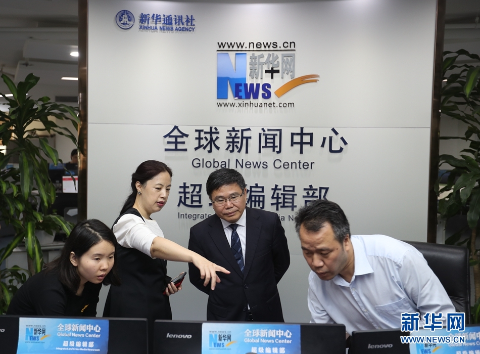 5月16日,外交部拉美司司長(zhǎng)趙本堂(左三)接受了新華網(wǎng)獨(dú)家專訪。圖為新華網(wǎng)副總編輯劉娟(左二)介紹新華網(wǎng)情況。新華網(wǎng)記者 郭小天攝