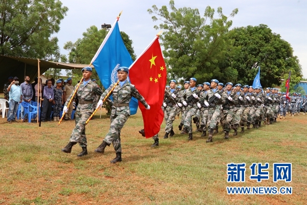 在隨后舉行的閱兵儀式上,中國(guó)維和部隊(duì)派出23名工兵組成的方隊(duì)。他們踏著雄壯的步伐,肩扛和平的旗幟,整齊地走過閱兵臺(tái),展現(xiàn)了中國(guó)人民解放軍“威武之師、文明之師、勝利之師”的良好形象,受到聯(lián)合國(guó)在場(chǎng)人員高度評(píng)價(jià)。