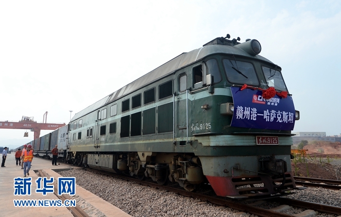 為世界和平發(fā)展注入強(qiáng)勁正能量——記中國擔(dān)任上海合作組織輪值主席國一年間在江西省贛州市南康區(qū)贛州港,“贛州港至哈薩克斯坦”中歐班列等待發(fā)車(2017年7月27日攝)。新華社記者 彭昭之 攝
