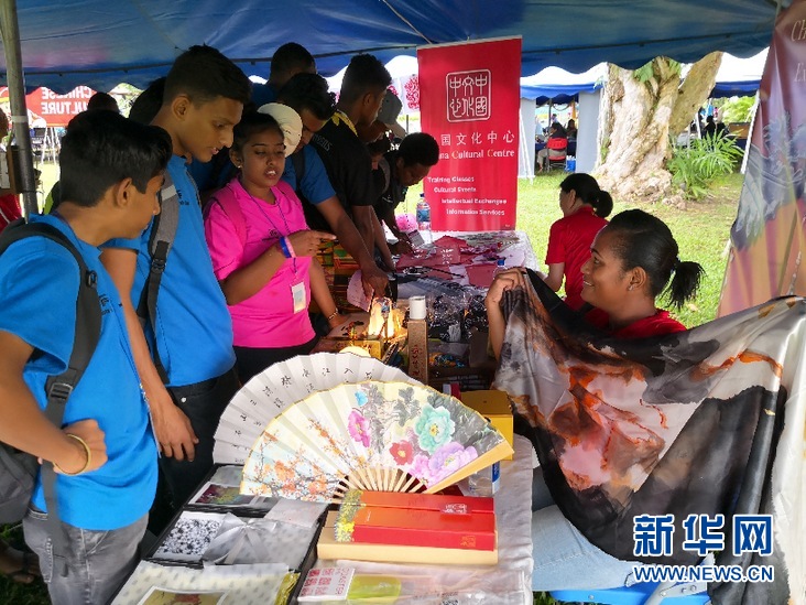 斐濟(jì)青少年正在了解中國(guó)的文化創(chuàng)意產(chǎn)品。 新華網(wǎng)記者張永興 攝
