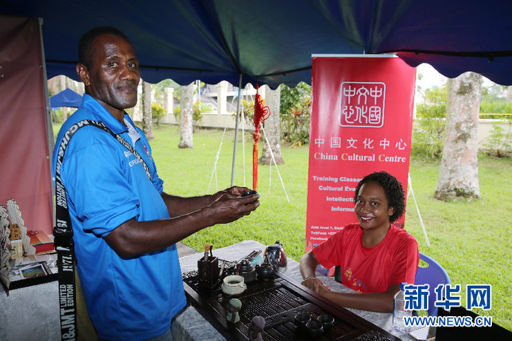 一位斐濟(jì)青年正準(zhǔn)備品嘗中國名茶。 新華網(wǎng)記者張永興 攝