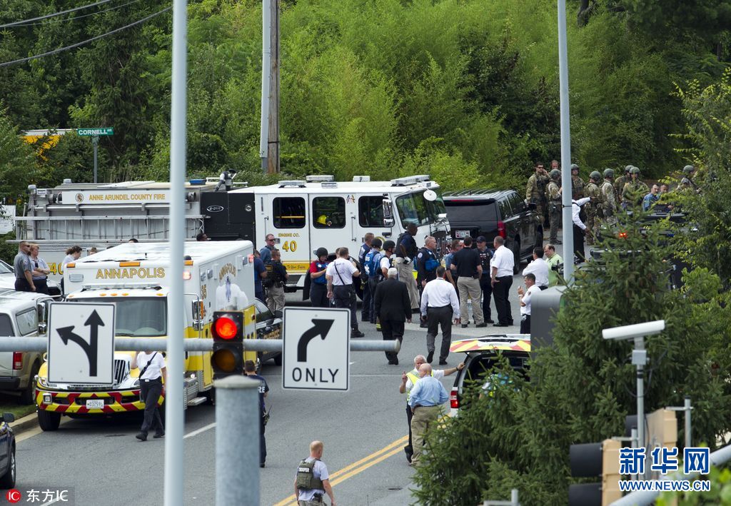 6月28日,美國馬里蘭州首府安納波利斯,當(dāng)?shù)匾粓?bào)社發(fā)生槍擊。馬里蘭州官員稱,槍擊目前已致5人死亡,多人受傷。(圖片來源:東方IC)