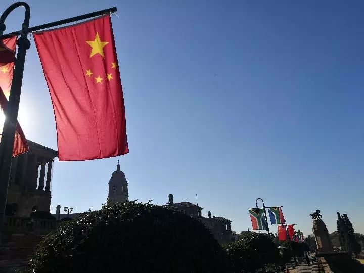 比勒陀利亞聯(lián)邦大廈廣場,草木蔥蘢。廣場旁的大道上,中國和南非兩國國旗高高掛起,迎風飄揚。