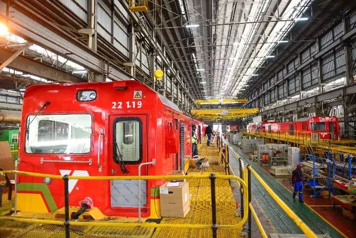 2017年7月27日,南非比勒陀利亞南非運輸集團工廠組裝車間,兩臺中國機車等待組裝。(新華社記者翟健嵐攝)