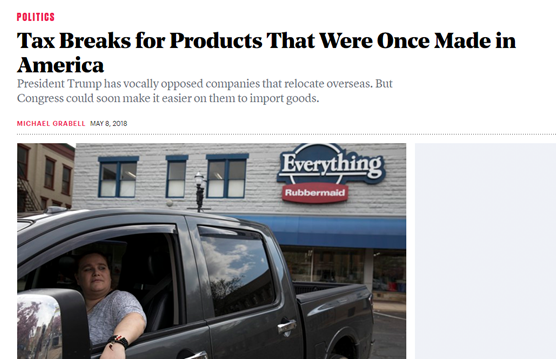 這方面,美國的《大西洋月刊》倒是在今年5月美國對華貿(mào)易戰(zhàn)開打前有所關(guān)注。當(dāng)時這家媒體認(rèn)為,這個法案展現(xiàn)了美國當(dāng)下貿(mào)易政策的一種矛盾:一方面美國國會兩黨都希望給大企業(yè)進(jìn)一步減輕關(guān)稅壓力——甭管他們的產(chǎn)品到底是哪兒生產(chǎn)的;可另一方面美國總統(tǒng)特朗普卻多次表示要懲罰把工廠搬到美國境外的企業(yè)。