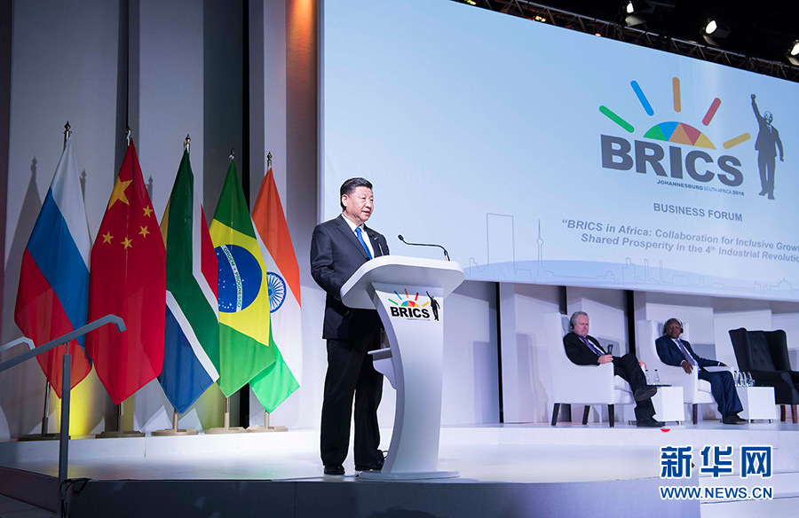 7月25日,國家主席習(xí)近平應(yīng)邀出席在南非約翰內(nèi)斯堡舉行的金磚國家工商論壇,并發(fā)表題為《順應(yīng)時代潮流 實現(xiàn)共同發(fā)展》的重要講話。新華社記者李濤攝