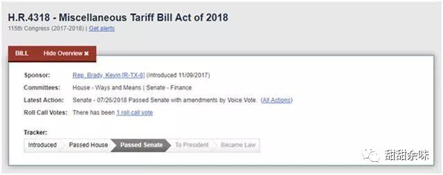 1.從法案本身來(lái)看,據(jù)美國(guó)國(guó)會(huì)官網(wǎng)顯示,其最早提交到眾議院的時(shí)間是2017年9月11日(對(duì)應(yīng)法案流程的第一步“Introduced”);下一節(jié)點(diǎn)是2018年1月16日,應(yīng)該也就是眾議院進(jìn)行討論并通過(guò)的日期,此后就是1月17日,從這一天起,處理者由眾議院變成了參議院(對(duì)應(yīng)流程的第二步“Passed House”);再下一個(gè)節(jié)點(diǎn)就是2018年7月26日了。