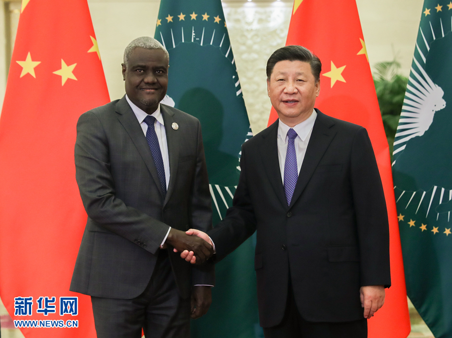 9月5日,國家主席習(xí)近平在北京人民大會堂會見非洲聯(lián)盟委員會主席法基。新華社記者 李濤 攝