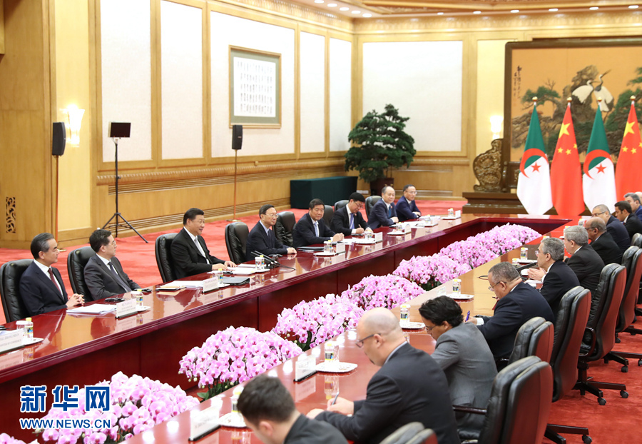 烏葉海亞表示,昨天,我向布特弗利卡總統(tǒng)報(bào)告了北京峰會的盛況。他讓我轉(zhuǎn)達(dá)對習(xí)近平主席的熱烈祝賀以及對中國支持非洲的衷心感謝。烏葉海亞表示,阿中關(guān)系歷史悠久。阿爾及利亞在爭取民族獨(dú)立和實(shí)現(xiàn)國家發(fā)展中得到中方寶貴支持,雙方在國際事務(wù)中一直緊密配合。阿方贊賞并支持北京峰會提出的中非合作新舉措,愿以此次雙方簽署“一帶一路”合作協(xié)議為契機(jī),深化雙方務(wù)實(shí)合作。