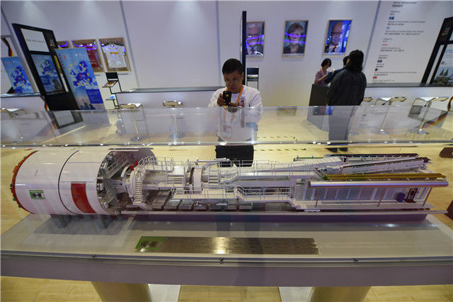 11月5日,一名參觀(guān)者在德國(guó)展館內(nèi)拍攝雙護(hù)盾盾構(gòu)機(jī)模型。當(dāng)日,中國(guó)國(guó)際進(jìn)口博覽會(huì)在上海開(kāi)幕。國(guó)家貿(mào)易投資綜合展(國(guó)家展)是中國(guó)國(guó)際進(jìn)口博覽會(huì)的重要內(nèi)容,共有82個(gè)國(guó)家、3個(gè)國(guó)際組織設(shè)立71個(gè)展臺(tái)。國(guó)家展中,印度尼西亞、越南、巴基斯坦、南非、埃及、俄羅斯、英國(guó)、匈牙利、德國(guó)、加拿大、巴西、墨西哥等12個(gè)主賓國(guó)均設(shè)立了獨(dú)具特色的展館。新華社記者 韓瑜慶 攝