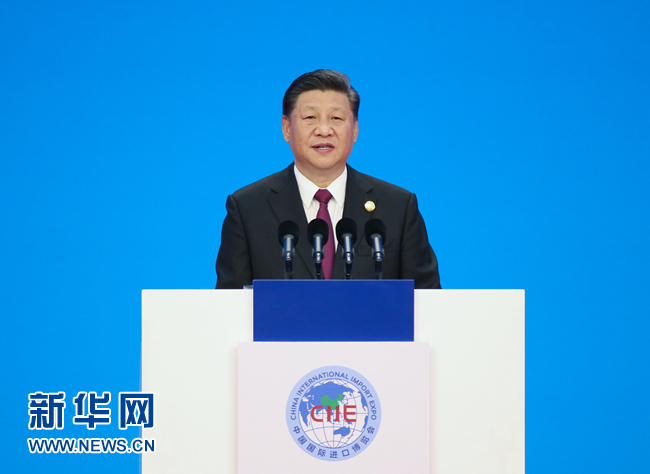 11月5日,首屆中國(guó)國(guó)際進(jìn)口博覽會(huì)在上海開(kāi)幕。國(guó)家主席習(xí)近平出席開(kāi)幕式并發(fā)表題為《共建創(chuàng)新包容的開(kāi)放型世界經(jīng)濟(jì)》的主旨演講。 新華社記者 姚大偉 攝