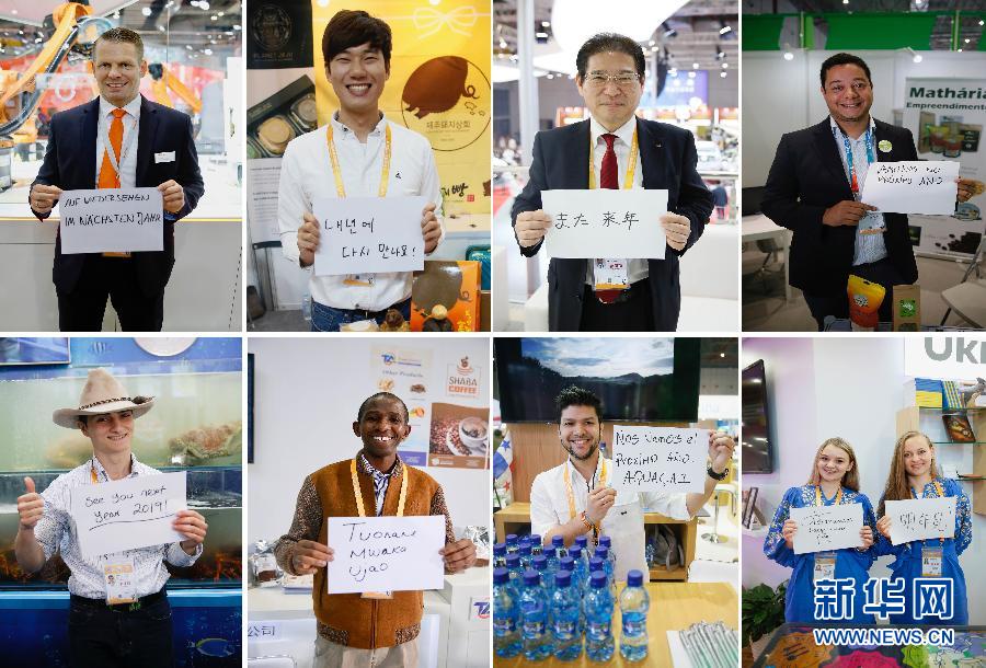 11月10日,進(jìn)博會(huì)上不同國(guó)家的參展人員展示用不同語(yǔ)言書(shū)寫(xiě)的“明年見(jiàn)”(拼版照片)。 首屆中國(guó)國(guó)際進(jìn)口博覽會(huì)11月5日至10日在上海舉行。記者在采訪(fǎng)中了解到,很多參展商在進(jìn)博會(huì)上收獲了不少訂單,宣傳了自己的產(chǎn)品,結(jié)識(shí)了很多朋友。他們表示,希望明年再來(lái)進(jìn)博會(huì)。 新華社記者 侯東濤 攝