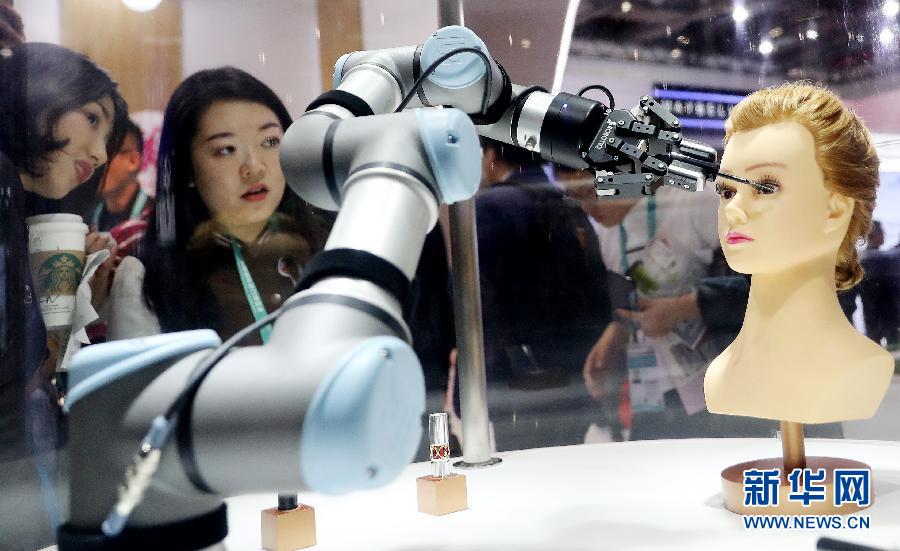 11月7日,參觀者在法國(guó)歐萊雅展臺(tái)觀看機(jī)器人作業(yè)演示。 休戚與共的地球村,共享創(chuàng)新成果已成為國(guó)際社會(huì)的共同意愿和現(xiàn)實(shí)選擇。透過(guò)進(jìn)博會(huì)這個(gè)窗口可以看出,從上下游產(chǎn)業(yè)銜接到前沿領(lǐng)域合作,從協(xié)作共享資源到開(kāi)放共享智慧,全球經(jīng)濟(jì)發(fā)展的新動(dòng)能正在匯聚。 新華社記者 方喆 攝
