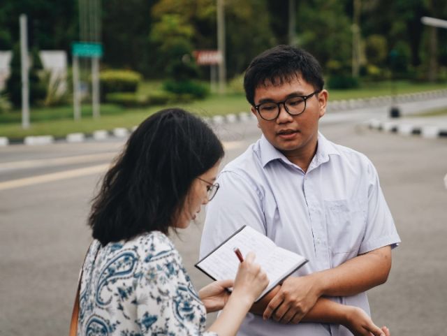文萊大學生賴鏡文在接受記者采訪。新華社記者畢曉洋攝