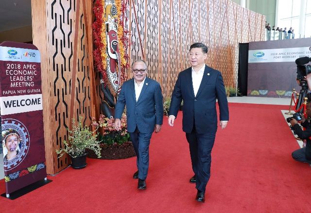 11月18日,亞太經(jīng)合組織第二十六次領(lǐng)導(dǎo)人非正式會(huì)議在巴布亞新幾內(nèi)亞莫爾茲比港舉行。國(guó)家主席習(xí)近平出席并發(fā)表題為《把握時(shí)代機(jī)遇 共謀亞太繁榮》的重要講話。會(huì)議開(kāi)始前,習(xí)近平同其他與會(huì)領(lǐng)導(dǎo)人依次抵達(dá),受到巴布亞新幾內(nèi)亞總理奧尼爾熱情迎接。新華社記者 龐興雷 攝
