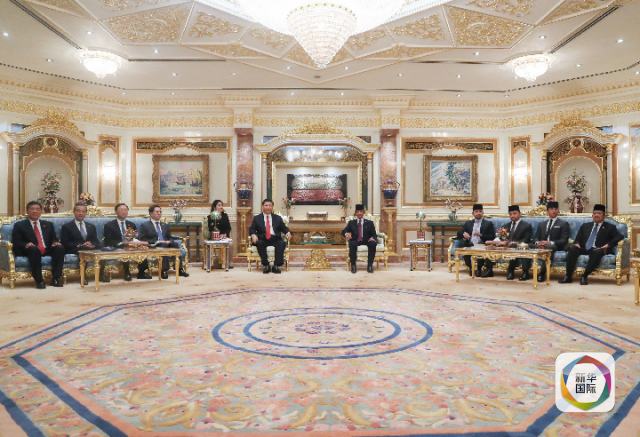 11月19日,國家主席習近平在斯里巴加灣同文萊蘇丹哈桑納爾舉行會談。新華社記者 鞠鵬 攝