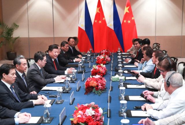 11月21日,國家主席習(xí)近平在馬尼拉會(huì)見菲律賓眾議長阿羅約和參議長索托。新華社記者 龐興雷 攝