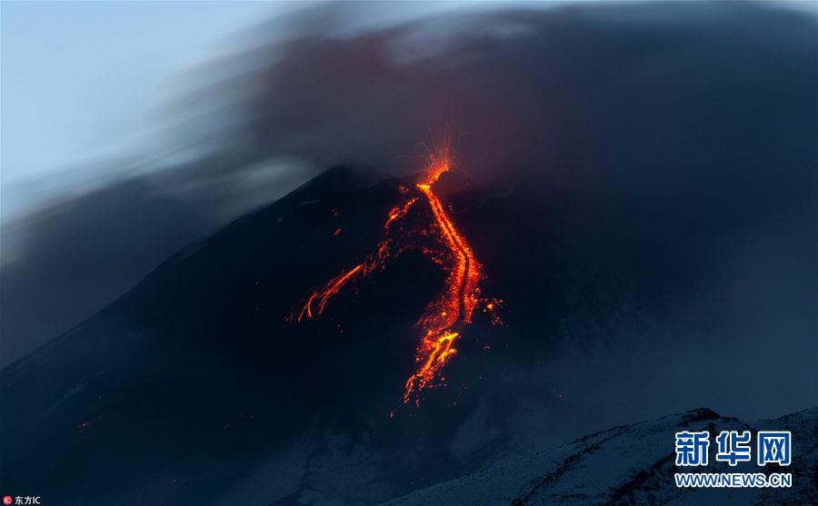 當(dāng)?shù)貢r(shí)間2018年12月8日,意大利西西里島,位于西西里島的東岸活火山埃特納火山再度活躍噴發(fā),熔巖火山灰滾滾噴射。