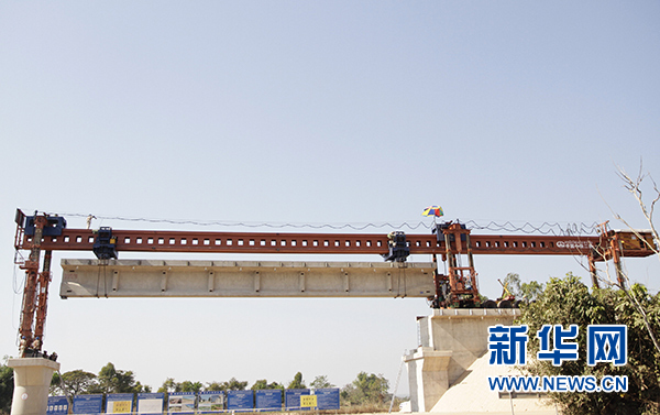 這是2月9日在老撾首都萬(wàn)象拍攝的楠科內(nèi)河特大橋架梁施工現(xiàn)場(chǎng)。新華社發(fā)(臧衡 攝)