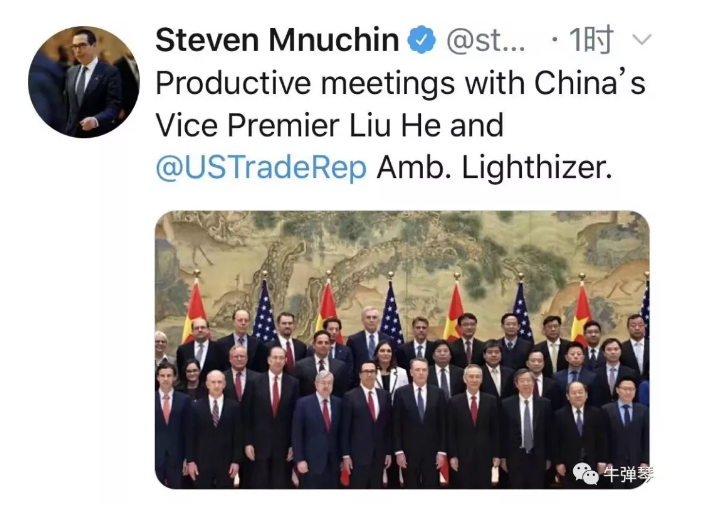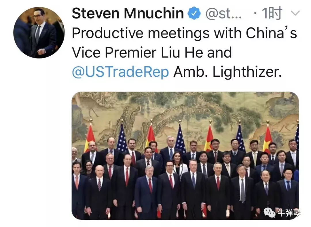 很有意思的,這次磋商一結(jié)束,美國財(cái)長姆努欽立刻發(fā)了一條推特,上面寫道:和劉鶴副總理、萊特希澤大使進(jìn)行了富有建設(shè)性的會(huì)議。