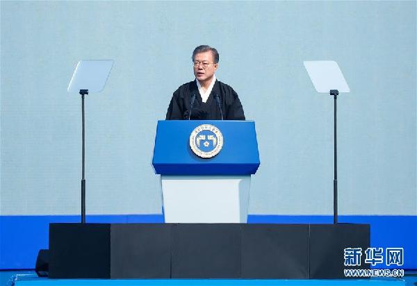 3月1日,韓國總統(tǒng)文在寅在首爾舉行的“三一運(yùn)動(dòng)”100周年大會(huì)上發(fā)表講話。 韓國總統(tǒng)文在寅1日在首爾光化門廣場出席紀(jì)念“三一運(yùn)動(dòng)”100周年大會(huì)時(shí)發(fā)表講話表示,韓國將力推構(gòu)建“新半島體系”,實(shí)現(xiàn)韓朝之間共建“和平合作共同體”和“經(jīng)濟(jì)合作共同體”。新華社記者 王婧嬙 攝