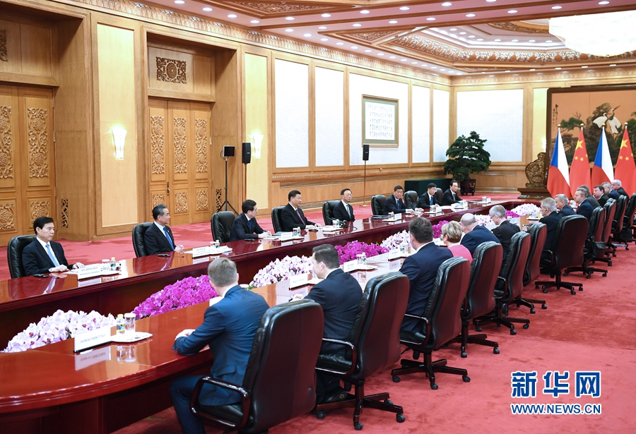 4月28日,國家主席習近平在北京人民大會堂會見捷克總統(tǒng)澤曼。 新華社記者 翟健嵐 攝