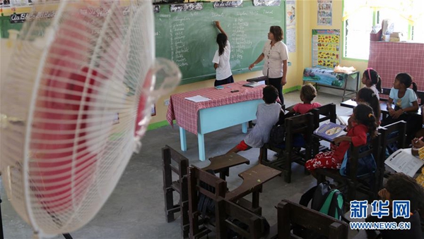 菲律賓中小學6月開始新學年。坐在明亮涼爽的教室中,巴利瓦特小學的孩子們十分興奮?!艾F(xiàn)在有了電燈、電風扇,孩子們終于不用渾身濕漉漉地趴在書桌上費力讀書了?!苯處煱@荨たㄍ呒铀拐f。