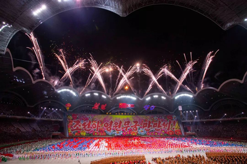 這臺演出為習(xí)近平此訪專門精心創(chuàng)作,數(shù)萬名朝鮮演員參加表演,朝鮮三大樂團(tuán)首次同臺獻(xiàn)藝,整場演出氣勢恢宏、震撼感人。