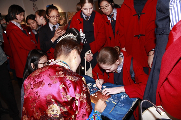 悉尼市圣凱瑟琳女子學(xué)校、圣艾夫斯高中和莫斯曼英格蘭教會(huì)小學(xué)學(xué)生體驗(yàn)貴州非物質(zhì)文化遺產(chǎn)技藝。(圖片由悉尼中國(guó)文化中心提供)