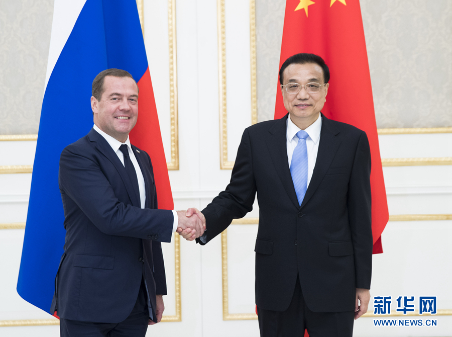 新華社塔什干11月1日電(記者白潔 蔡國棟)當(dāng)?shù)貢r(shí)間11月1日晚,國務(wù)院總理李克強(qiáng)在塔什干會(huì)見出席上海合作組織成員國總理會(huì)的俄羅斯總理梅德韋杰夫。