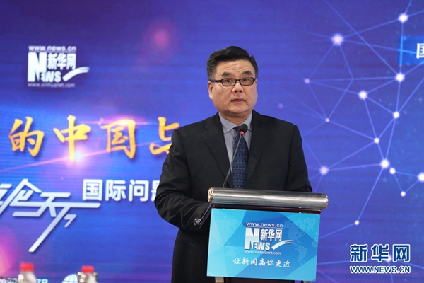 1月7日,新華網第十屆“縱論天下”國際問題研討會成功舉行。圖為中國國際問題研究院歐洲研究所所長崔洪建在進行主旨演講。新華網 李清 攝