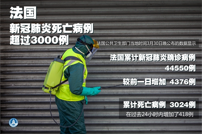 新華社巴黎3月30日電(記者陳晨)法國(guó)公共衛(wèi)生部門30日晚公布的數(shù)據(jù)顯示,法國(guó)累計(jì)新冠肺炎確診病例44550例,較前一日增加4376例;累計(jì)死亡病例3024例,在過(guò)去24小時(shí)內(nèi)增加了418例。