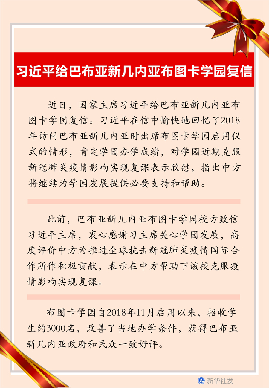 此前,巴布亞新幾內(nèi)亞布圖卡學(xué)園校方致信習(xí)近平主席,衷心感謝習(xí)主席關(guān)心學(xué)園發(fā)展,高度評價(jià)中方為推進(jìn)全球抗擊新冠肺炎疫情國際合作所作積極貢獻(xiàn),表示在中方幫助下該??朔咔橛绊憣?shí)現(xiàn)復(fù)課。