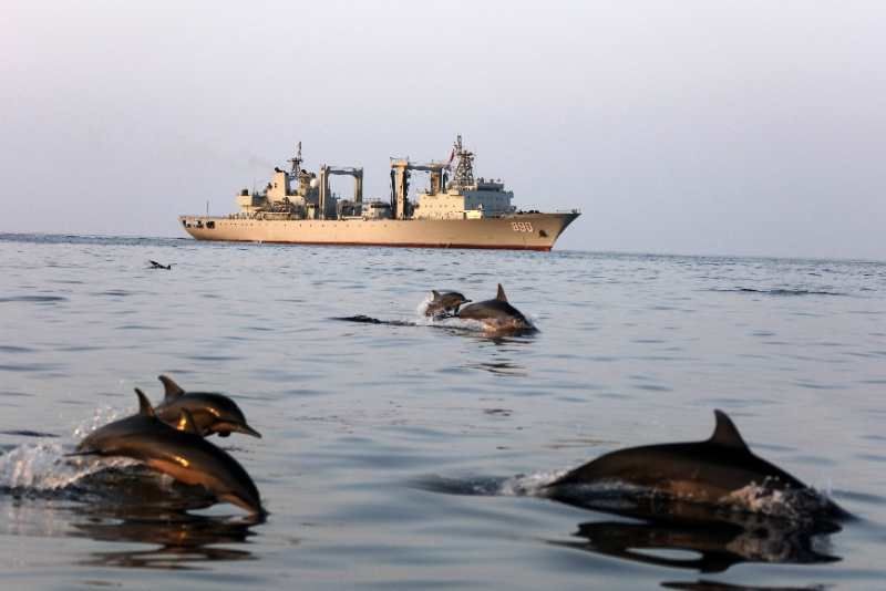 中國海軍赴亞丁灣索馬里海域護(hù)航編隊始終秉持海洋命運共同體理念,堅持人與大海和諧相處,注重生態(tài)環(huán)境保護(hù),贏得大自然積極回報,經(jīng)常出現(xiàn)編隊艦艇航行時有成群海豚伴航、待機集結(jié)時有各類魚群相伴的和諧場景。