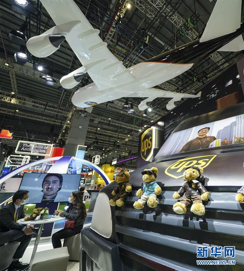 11月5日拍攝的第三屆進博會服務貿(mào)易展區(qū)UPS展臺。新華社記者 張豪夫 攝