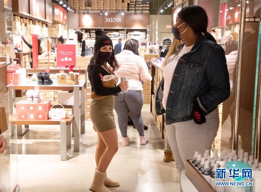 受新冠疫情影響,今年美國“黑色星期五”購物促銷日前往商店購物的人數(shù)較往年減少。