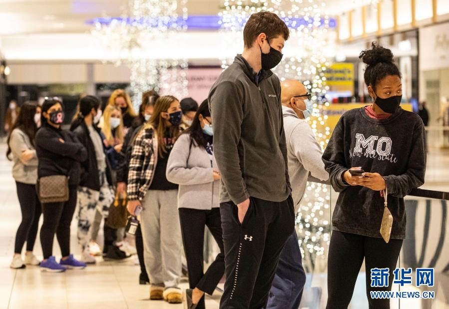 受新冠疫情影響,今年美國“黑色星期五”購物促銷日前往商店購物的人數(shù)較往年減少。