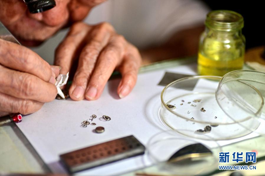 12月5日,在馬來西亞雪蘭莪州巴生的郁昌表行,韋華在維修手表。新華社發(fā)(張紋綜攝)