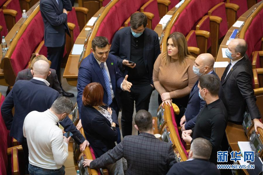 12月15日,在烏克蘭基輔,烏最高拉達(dá)(議會(huì))議員們?cè)诰皖D巴斯地區(qū)特殊地位法是否延期進(jìn)行討論。新華社發(fā)(亞歷山大·庫(kù)茲敏攝)