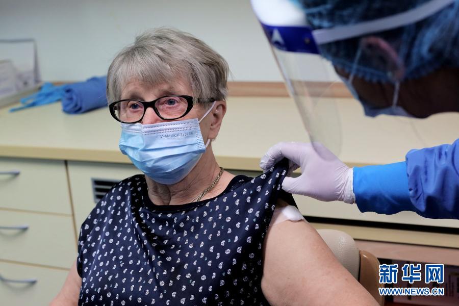 12月27日,在斯洛文尼亞首都盧布爾雅那一家養(yǎng)老院,醫(yī)務(wù)人員為一名志愿者老人注射新冠疫苗。