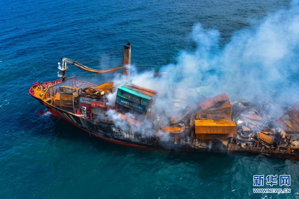 6月2日,斯里蘭卡總統(tǒng)戈塔巴雅下令將起火貨船“X-PRESS PEARL”號拖向遠(yuǎn)離科倫坡港的深海區(qū),以防引發(fā)更大的環(huán)境災(zāi)難。“X-PRESS PEARL”號貨船5月20日抵達(dá)科倫坡港西北約9.5海里錨地時發(fā)出火警求救信號。斯里蘭卡海洋環(huán)境保護局官員5月28日表示,在科倫坡港附近起火燃燒的“X-PRESS PEARL”號貨船預(yù)計將會引發(fā)嚴(yán)重環(huán)境災(zāi)難。新華社發(fā)(斯里蘭卡空軍媒體處供圖)