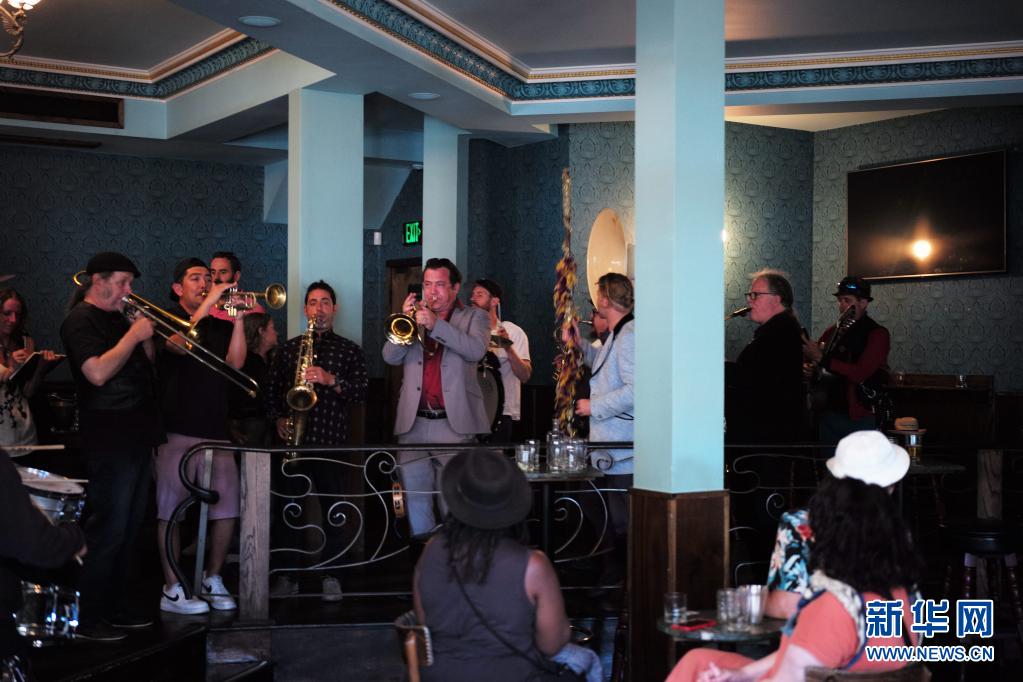 6月15日,一支樂隊在美國加利福尼亞州舊金山的一家酒吧內(nèi)演奏。