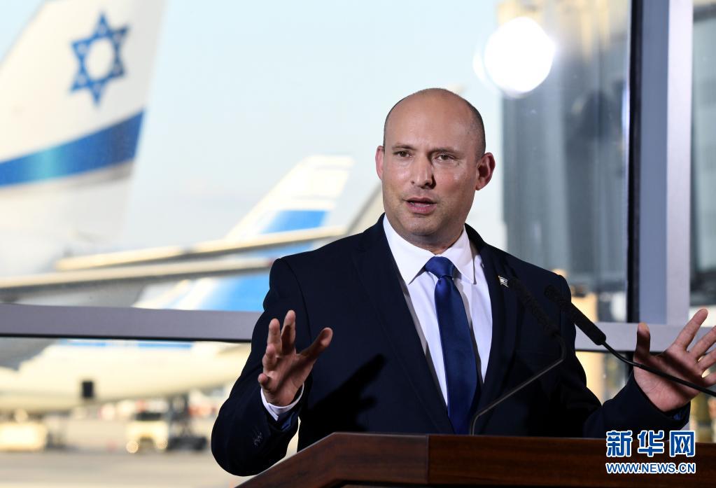 6月22日,以色列總理貝內(nèi)特在本古里安國際機(jī)場(chǎng)發(fā)表電視聲明。